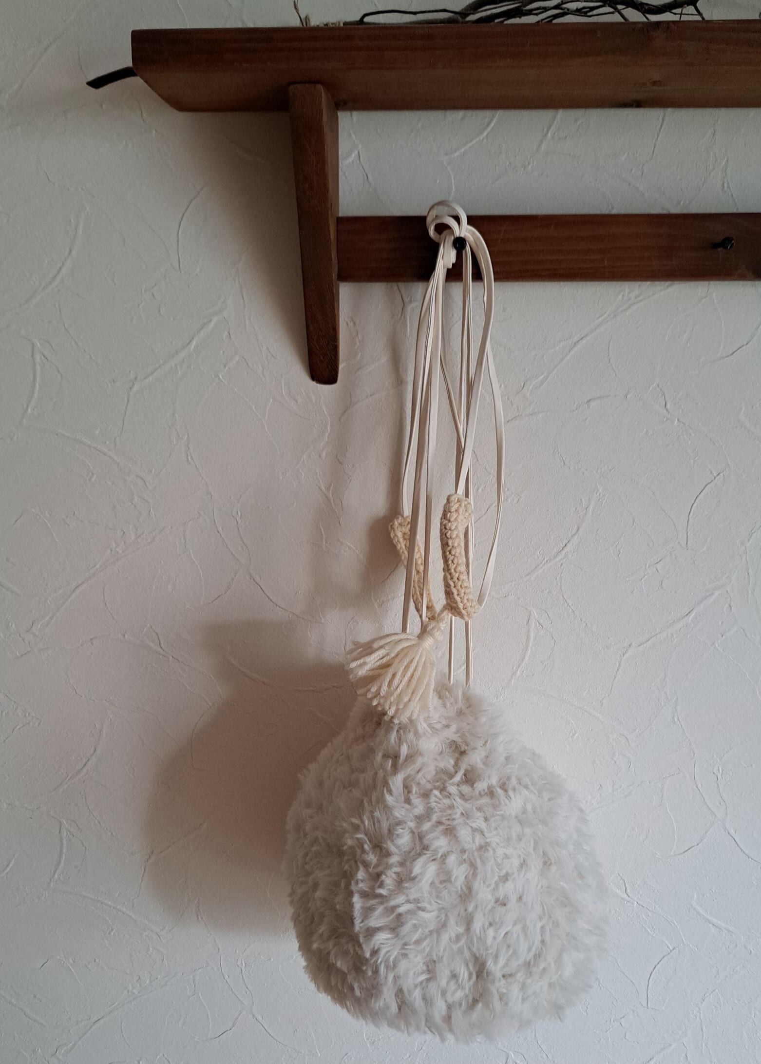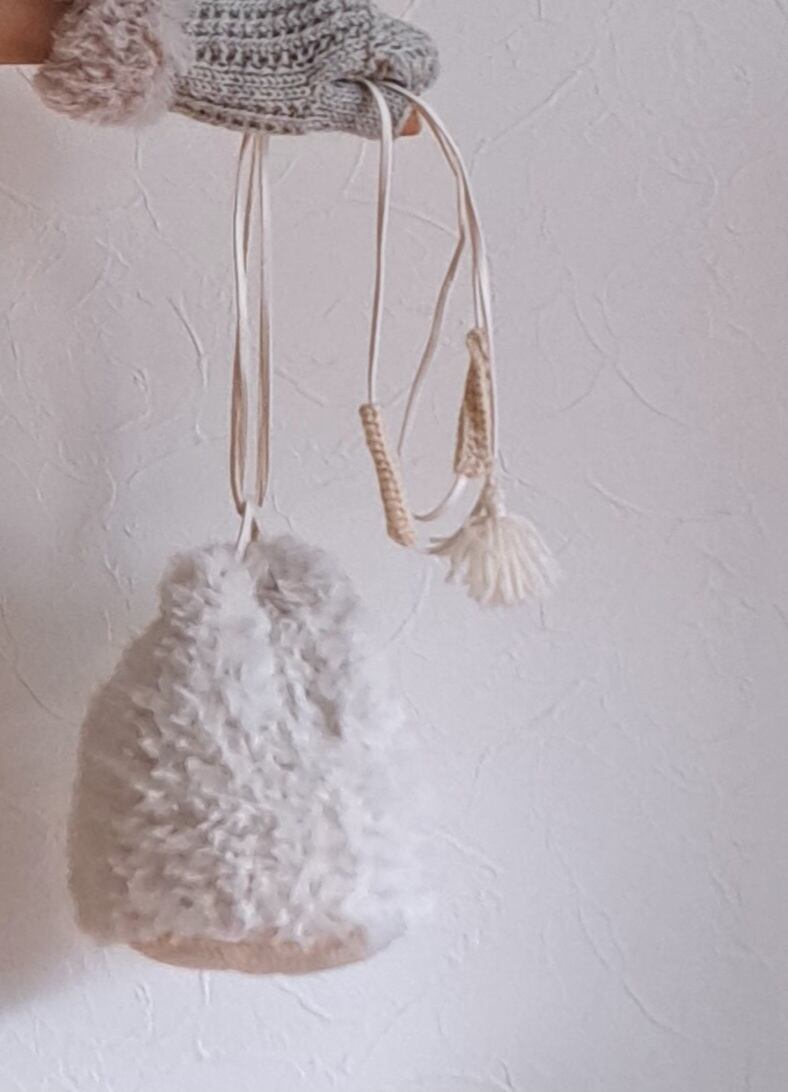 モフモフのまんまる巾着バッグ/オフホワイト