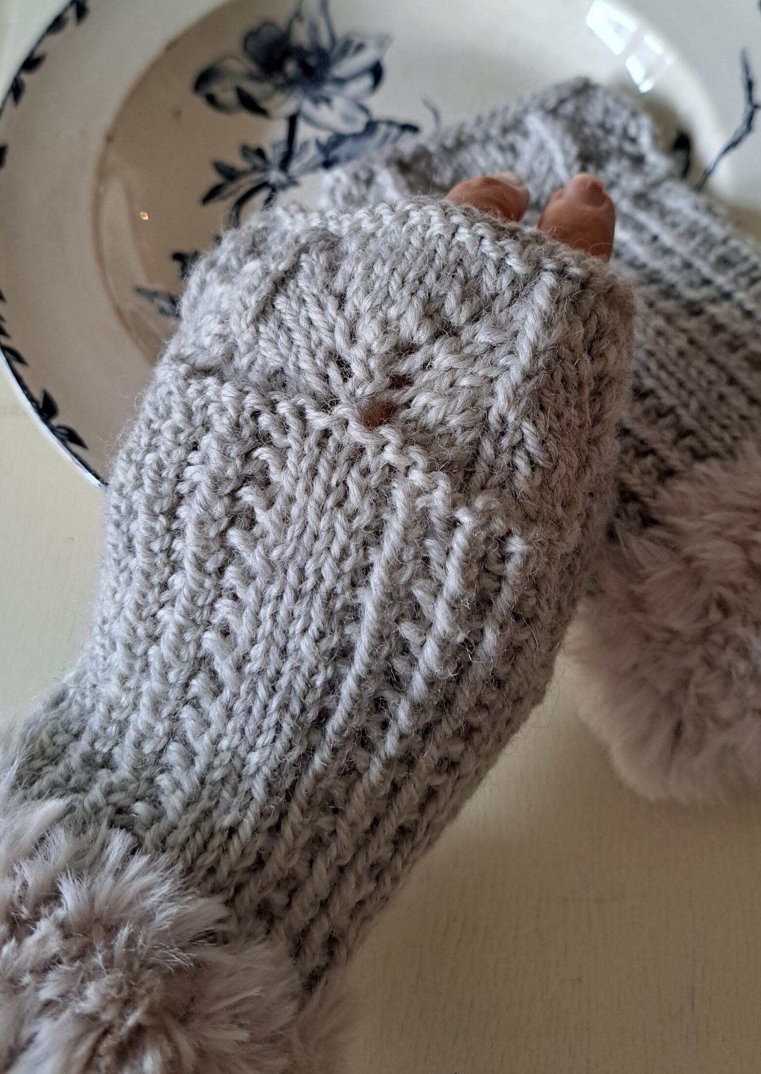 エコファー付き手編みアームウォーマー/グレー